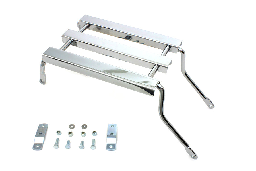 Chrome retro luggage rack for FLHR models with solo seat features three channel type construction. Rack is designed for loads of 10 pound or less. *Note: UPS may consider this part as packaged oversize for shipment as compared to the actual weight which will result in higher shipping costs.