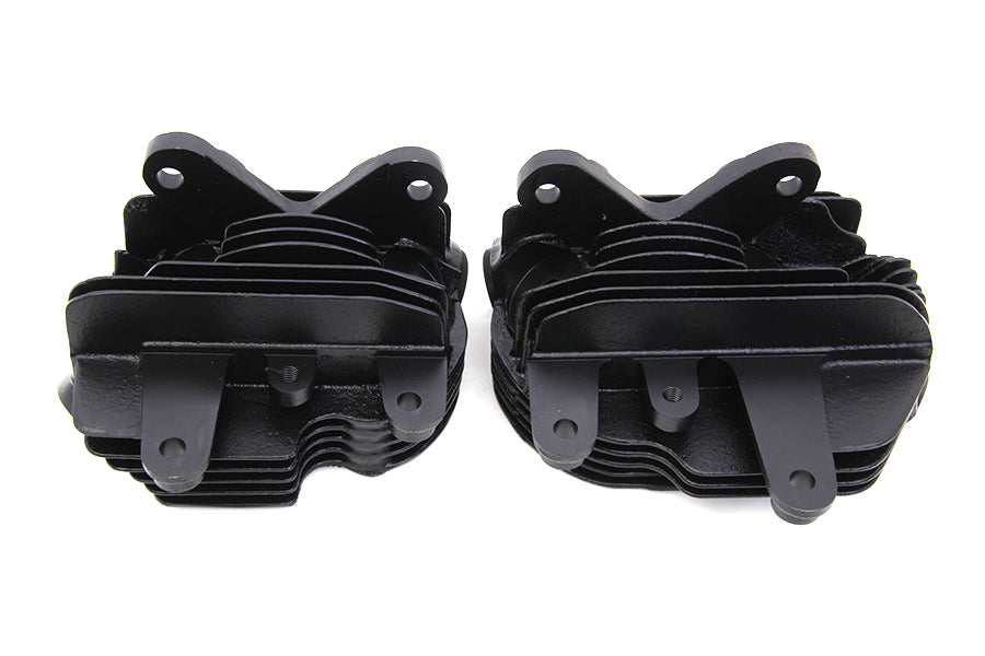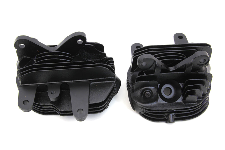 1937-1938 EL bare Knucklehead head set features OEM production numbers mc sign small intake port primer black plugs manifold nipples and are painted with black heat paint. Exact for 1937 only but can be used on 1937-1939 61 EL models. Either type of valve spring cover can be installed either cup type of full cover and top set. Accepts baby butt intake manifold springs valves collars spring cups and top tins included and assembled. *NOTE: Valve seats are installed but not cut. Uses 1-3/8 large hex 18mm plugs. *NOTE: Heads include feature detailed casting hallmarks as original black painted. *NOTE: Accepts large 1-3/8 hex Doering #3 spark plug set. Material of valve seats features a better hardenability and heat resistance than 1.2713. Material is tough with high compressive strength and high tempering resistance. Hardness equals 370-415 HB. Tensile strength equals 1250-1400 N/mn2. Condition is tempered.