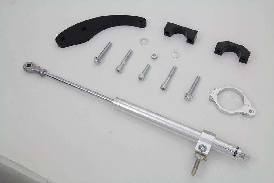 Fork steering damper kit for Touring models attaches to lower fork stem and crash bar. Includes damper and correct mounting hardware. *NOTE: Will not work with lower fairing covers.