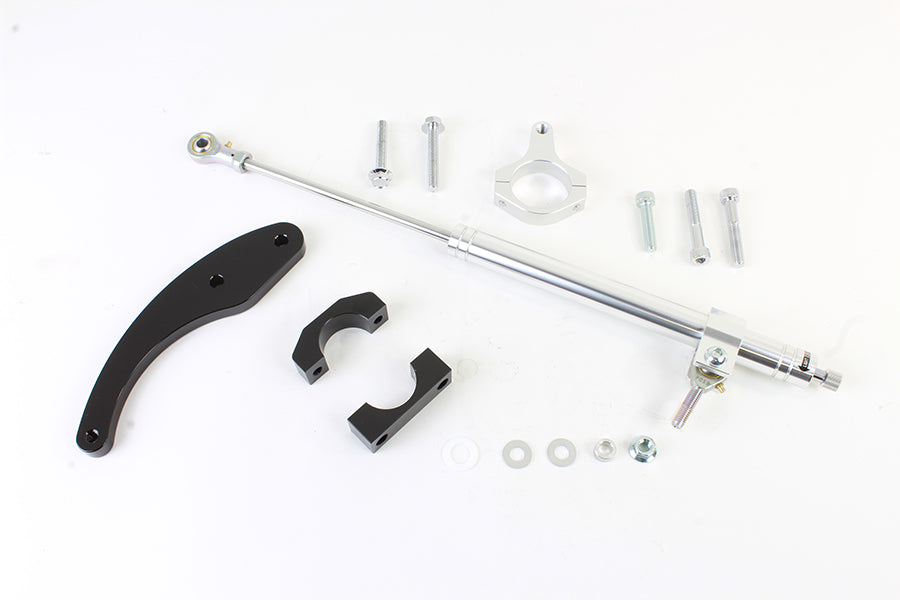 Fork steering damper kit for Touring models attaches to lower fork stem and crash bar. Includes damper and correct mounting hardware. *NOTE: Will not work with lower fairing covers.