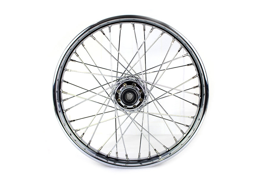Features a Replica 21 x 2.15 drop center rim a chrome hub with 25mm bearings and 40 chrome spokes. Not ABS compatible. NOTE: All spokes on wheel need to be inspected and re-torqued after 500 miles of original installation. NOTE: Non ABS. *Note: UPS may consider this part as packaged oversize for shipment as compared to the actual weight which will result in higher shipping costs.