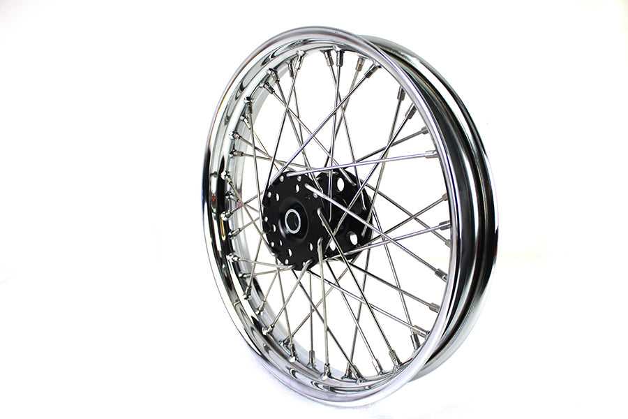 18 x 2.15 chrome Indian rear wheel features a black cast hub stainless steel spokes and a chrome rim. Accepts 5-lug bolts. 18 wheels with cast hub should have a .25 offset from the sprocket side of the hub face to the edge of the rim.