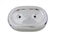 Chrome oval air cleaner cover. Holes are 4 apart center hole to center hole.