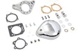 Wyatt Gatling assembly includes chrome teardrop air cleaner with smooth cover integral breather system with bracket and mounting kit. For use with CV carburetors. Includes filter element. DIY easy install bolt-on assembly has no hoses to connect!