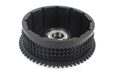 2019 New Production clutch drum with a 9 tooth ratchet plate that is riveted in place. For use with kick starter or electric start models. *NOTE: The clutch drum includes the clutch hub bearing and transmission main bearing snap ring installed.