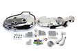 Chrome engine dress up kit includes rocker shaft end nuts sprocket cover cam cover trim outer primary cover kit brake pedal shifter lever in chrome the kick starter return spring and stud. NOTE: Kit doesn not include chrome rocker box cover set.