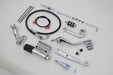 Stock mid-control kit is factory style in chrome. Kit includes all components. Must order male peg set separately. Additional hardware may be required for installation.