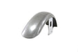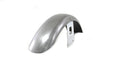 Narrow front fender has a raw finish with chrome brackets riveted on. Features a smooth type construction. Fender is for 35mm and 39mm forks with a 19 or 21 wheel. The width of the fender bracket mount holes is 2-5/8 . The distance from the top of the mounting hole to the bottom of the fender is 3-7/8 . We suggest pre fitting the fender prior to painting. Before priming or painting fit the fender body braces and mounting points in place. Fender rivets hinge and brackets will have to be tweaked for final fitment. Patience is required for proper installation!