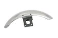 Front fender is raw constructed of a steel shell riveted to a steel bracket. Features a smooth type construction. For use on 19 wheels. We suggest pre-fitting the fender prior to painting. The spacing of the mounting holes measure 2-5/8 center to center.