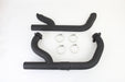 2:1 siamese exhaust header set features a black finish. The pipes fit over the cam cover for the TT race look. Order replacement t-bolts if required. Does not include oxygen sensor bungs. *NOTE: Extension of the rear pipe fits over the front pipe and is clamped with an integral clamp to secure. This joint is adjustable to fit each pipe installation fasten each header flange bolt and then tighten center tube clamp. *NOTE: Heat shield is included but must be fitted when header is in place. Modification may be required.