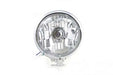 Round 5-3/4 clear faceted lens with a 12 volt 60/55 watt H-4 halogen with a chrome plated housing and a blue high beam indicator. Ready to install headlamp assembly includes the mounting block and wiring.