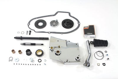 V-TWIN MANUFACTURINGIn stockKick starter conversion kit includes chrome sprocket cover with logo includes transmission mainshaft chrome kick starter arm rubber pedal and k...