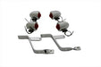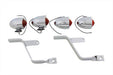 Chrome Captain America style lamp kit includes right and left brackets and 4 red bullet lamps to be wired for brake and tail lamp.