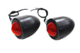 Black double filament bullet lamp set with 12 volt 23/8 watt clear bulb with red lens with black stem. *NOTE: For show or decorative use only and are not D.O.T. approved. Sold as a pair.