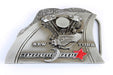 Motorcyclepedia belt buckle with silver patina finish. Has New York red star and Panhead motor detail. Reproduction of the original belt buckles of the 1980's and 1990's!