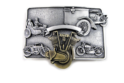 V-TWIN MANUFACTURINGIn stockJD belt buckle with four motorcycles and JD motor depicted. Bronze colored motor overlaid on silver pewter patina buckle . Reproduction of the orig...