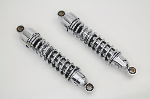 V-TWIN MANUFACTURINGIn stockChrome 11-1/2 shocks are nitrogen charged with multi stage dampening and adjustable spring load. Feature chrome springs and caps with a black body...