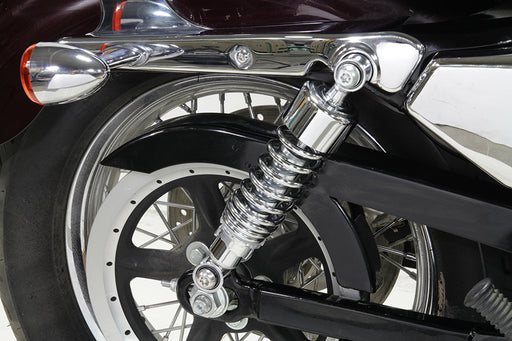 V-TWIN MANUFACTURINGIn stock11-3/4 chrome spring shock includes chrome springs for 883 Hugger models. Warning:Installing a lowering kit or shorter shocks will decrease initia...