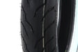 This front wide whitewall tire has a new tread design that provides even tread wear and quiet operation in all conditions both wet and dry. **WARNING: Newly fitted tires should not be subjected to sudden acceleration hard cornering or maximum power or braking for at least 100 dry miles. Loss of control and serious injury or death may be a result in doing so. By waiting till the 100 mile break in the rider will become accustomed to the feel of the new tires or tire combination. You should check and adjust inflation pressure to recommended levels after tires cool for at least 3 hours following run in. *Note: UPS may consider this part as packaged oversize for shipment as compared to the actual weight which will result in higher shipping costs.
