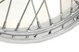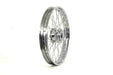 21 x 2.15 Replica single disc front wheel features a chrome hub with all internal bearings installed chrome spokes and a chrome rim All spokes on wheel need to be inspected and re-torqued after 500 miles of original installation. *Note: UPS may consider this part as packaged oversize for shipment as compared to the actual weight which will result in higher shipping costs.
