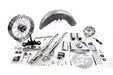 FLST style front end assembly features a hard chrome fork assembly. FLST style front end assembly includes a hard chrome fork assembly with chrome sliders. In addition the kit also includes: a 5 piece chrome fork cover set 7 headlamp and bracket 16 chrome wheel speedometer drive chrome caliper 11-1/2 drilled disc and FLST style fender.