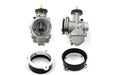 Air cleaner adapter for OKO 34mm and 38mm and 42mm and 45mm flat side carburetors. The adapter will mount CV type air cleaners to said carburetors. Installation is by clamp on rubber to spigot and 3 set screws for added support. Adapter is constructed of hard rubber and is made to accept CV pattern air cleaners. The flange features 3-1/4 x 20 tapped holes that are bonded to a rubber coupling which is clamped to the carburetor spigot. Installs by clamp on carburetors inlet. NOTE: Mounts to the carburetor spigot with a set of screws. *NOTE: Carburetor must be supported by breather combination bracket on 1993-2017 models or by steel support strap on Pre-1993 Big Twins.