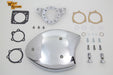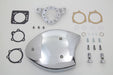 Wyatt Gatling assembly includes chrome air cleaner with scoop shaped cover integral breather system with bracket and mounting kit. For use with CV carburetors. Includes filter element. DIY easy install bolt-on assembly has no hoses to connect!