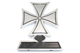 Chrome Maltese sissy bar insert. Cross is 4-1/4 tall and a base measurement of 3-5/8 Fits for OEM type sissy bars. The center to center distance between the mounting holes is 1-3/4 . *NOTE: Needs 1/4 x 20 thread count screws to mount.