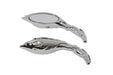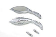 Chrome billet oval mirror set with flame style back and round flame style billet stems built in. set includes right and left sides.