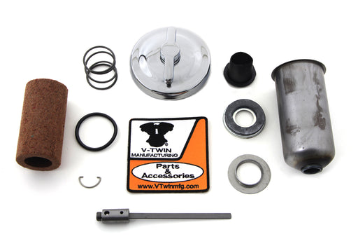V-TWIN MANUFACTURINGIn stockOil tank cap kit includes chrome cap assembly with knob and dipstick with complete filter assembly with OEM style components. FITMENT 1965 / 198...