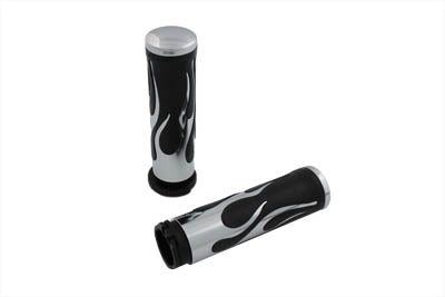V-TWIN MANUFACTURINGIn stockFeatures barrel shaped with flame design. Grip set is 6 long and accepts single or dual cable assemblies. Sold in a quanity of 2.FITMENT 1982 / 19...