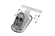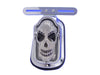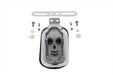 Chrome die cast skull face red LED tombstone tail lamp with clear lens and license plate bracket. *NOTE: For show or decorative use only and is not D.O.T. approved.