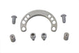 Chrome universal fork stop mounts to lower triple tree. Fork stop measures 3-3/16 center to center on the mounting holes. This universal fork stop can be installed on the top or bottom of the lower triple tree ensuring frame contact is establish and accomplishing the fork stop.