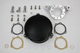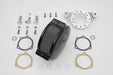 Wyatt Gatling assembly includes round deco air cleaner with black cover integral breather system with bracket and mounting kit. For use with CV carburetors. Includes filter element. DIY easy install bolt-on assembly has no hoses to connect!