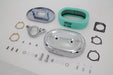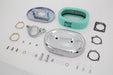 Wyatt Gatling assembly includes oval air cleaner with chrome cover integral breather system with bracket and mounting kit. For use with CV carburetors. Includes filter element. DIY easy install bolt-on assembly has no hoses to connect!