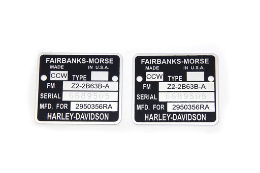 V-TWIN MANUFACTURINGIn stockMagneto name tag for Fairbanks-Morse Joe Hunt and Burkhardt sportster magnetos. Set of two.FITMENT 1959 / 1970 XLCH ACCESSORY ITEMS32-130932-0971...