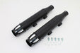 Black muffler set features a 3 body outer diameter and measures 20 long with highlighted revolver tips. The billet end has more a taper than Vtwin# 30-1614 & 30-1617. Sold in a quanity a set. **CAUTION: These exhaust products are not legal for sale or use in California on pollution controlled vehicles. These products are intended for non-highway only.