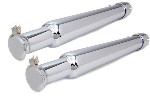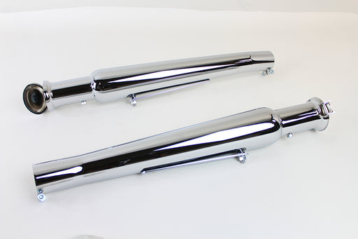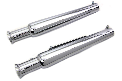 V-TWIN MANUFACTURINGIn stockReplica tapered muffler set has a 2-5/8 inch body diameter a 1-3/4 inch inlet inner diameter and a length of 19 inch. Set features a chrome finis...
