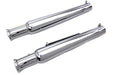 Chrome 20 megaphone slip on muffler includes end clamp fit 1-3/4 pipes and mount strap. The tapered outer diameter measures 1-7/8 to 2-3/4 .