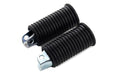 Replica female end mount footpeg set is zinc plated with black rubber covers on the ends.