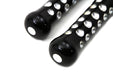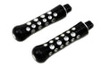 Male end footpeg set features a black contour agostinni style with natural ring. Set of two. *NOTE: These will not fit passenger on 2018-up Softail models.Bolts available separately; V-Twin #37-0020 chrome bolt set and #37-1679 zinc bolt set.