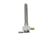 Pingel polished aluminum metric hex petcock features left spigot 3/8 National Pipe Thread without nut. Designs are made for a seated position on the motorcycle with the hose outlet facing a direction to ease fuel line hookup.