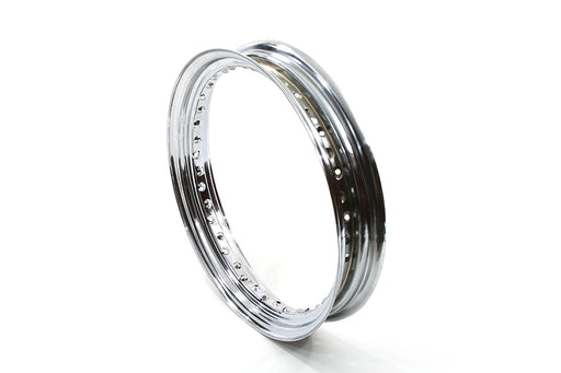 V-TWIN MANUFACTURINGOut of stockChrome front 19 X 2.15 wheel rim with 40 spoke holes. This is a WM type rim with welded beaded construction. This conventional type rim is flat s...