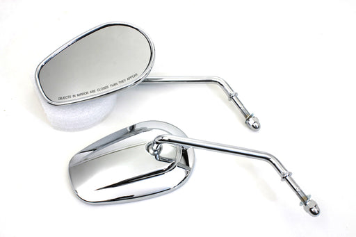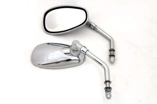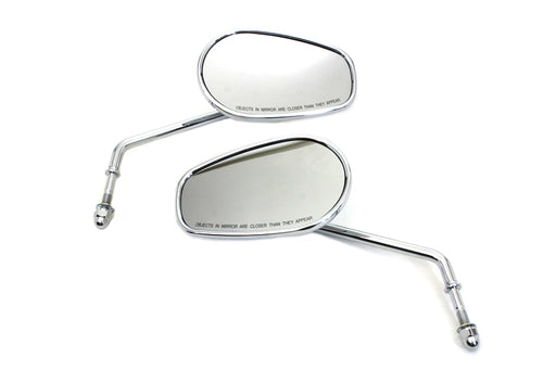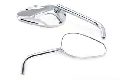 V-TWIN MANUFACTURINGIn stockTear drop mirror set measures 7 long and 3 wide at widest point. The curved style stems measure 5-1/2 long. This set includes right and left sid...