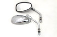 Split vision mirror set includes right and left side. These chrome plated wide eye dot mirrors provide a wide panoramic rear view getting rid of that blind spot. Mirror measures 5-1/8 and stem is 5-1/2 .