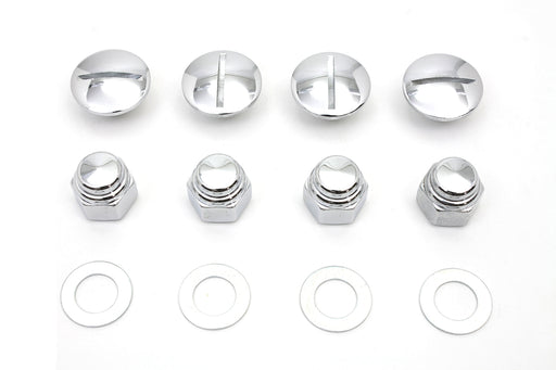 V-TWIN MANUFACTURINGIn stockRocker arm shaft end nut kit contains 4 cap nuts and washers with chrome finish. FITMENT 1966 / 1984 FL 1971 / 1984 FX 1979 / 1983 FLT 1982 / 1...