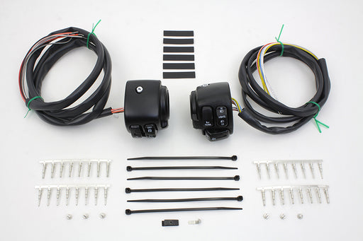 V-TWIN MANUFACTURINGIn stockBlack handle bar control switch housing kit with black left and right switches. Kit comes pre-wired and features a 60 wiring harness and all neces...