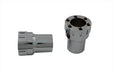 Chrome six gun pipe end set fits pipes with a 2-1/4 heat shields over 1-3/4 pipes. Set of two. This six gun pipe insert will fit in all 2-1/4 drag pipes with or without heat shields. Pipe ends must be cut straight and drilled for installation.