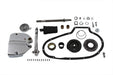 Kick starter conversion kit includes sprocket cover kick starter arm pedal gear stop ratchet plate and gear hole plug and hardware necessary for installation. Check ratchet gear spacing before assembly.