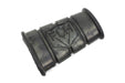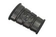 Black rubber kick starter pedal with an FLH logo has a molded slot which allows it to slide onto the steel pedal as does the original rubber pedal.